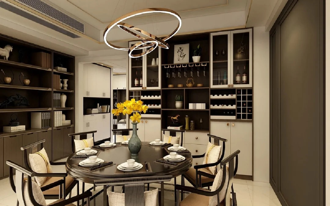 Het stylen van een ovale tafel kan op verschillende manieren. Grote hanglampen boven de tafel zorgen voor een warme en intieme sfeer. Daarnaast kan een groot vloerkleed de tafel extra benadrukken en het geheel meer samenhang geven.